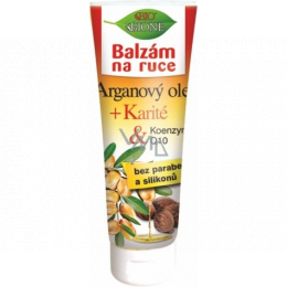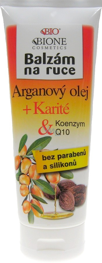 Średnio tłusty, ochronny balsam o uniwersalnym zastosowaniu dla wszystkich typów skóry, z odżywczą siłą BIO oleju arganowego, koenzymu Q10 i karité. Balsam jest wzbogacony o nowoczesny aktywny koenzym Q10 o znanej regenerującej i przeciwzmarszczkowej aktywności. Przyspiesza i optymalizuje naturalną mitochondrialną oksydację, a tym samym optymalizuje podstawowe funkcje komórkowe. BIO balsam do rąk zawiera szereg innych aktywnych i roślinnych substancji, takich jak np. alantoina, pantenol, glicerol i masło shea z naturalnymi filtrami UV oraz witaminą E, chroniącą przed wolnymi rodnikami. Balsam wykorzystuje nowoczesny akrylatowy system emulsyjny, dzięki czemu jest bardzo delikatny. Szybko się wchłania, pozostawia przyjemne, nietłuste uczucie. Żółtawy kolor balsamu powoduje koenzym Q10.