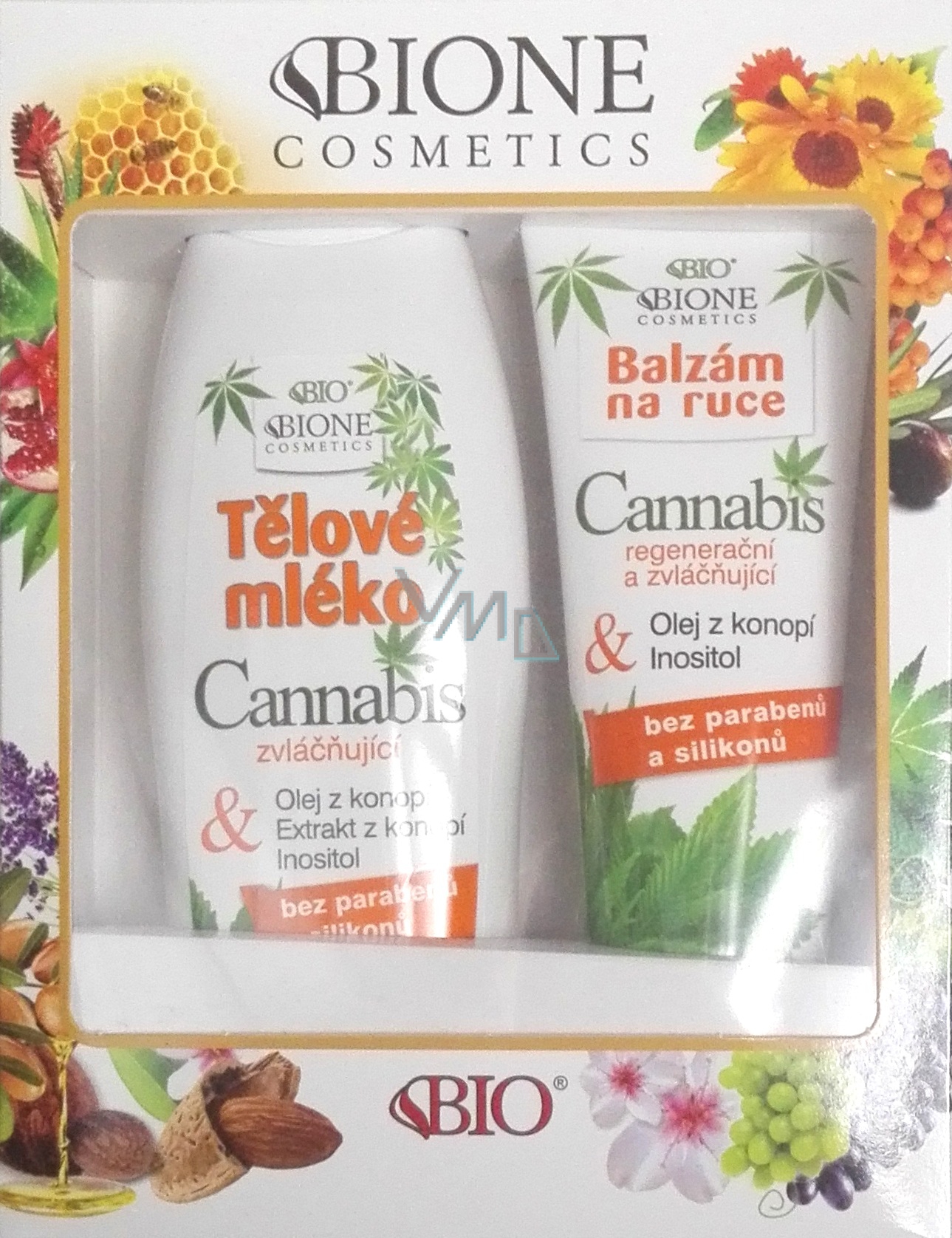 Bione Cosmetics Cannabis tělové mléko 500 ml + balzám na ruce 200 ml, kosmetická sada