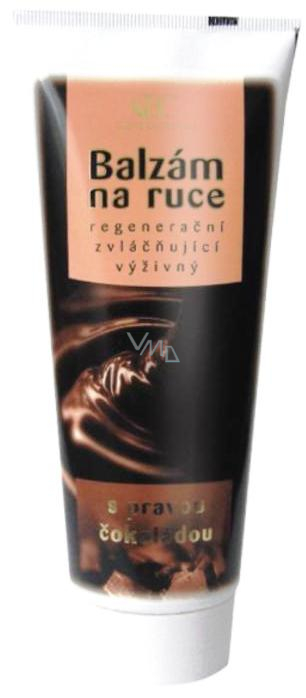 Balzám svým obsahem čokolády (kakao, lecitin, kakaové máslo) působí blahodárně na pokožku Vašich rukou. Bioflavonoidní antioxidanty (epikatechin) z kakaa, které jsou až třikrát silnější než např. v zeleném čaji, účinně odstraňují volné kyslíkové radikály, které se podílejí na stárnutí pokožky. Kakaové a bambucké máslo pokožku promastí a zvláční. Balzám dále obsahuje významné aktivní látky jako panthenol, allantoin, glycerin, tocopherol a bio minerály. Balzám je středně tučný, rychle vstřebatelný s univerzálním použitím pro všechny typy pokožky. Vyniká typem moderní polyakrylátové emulze s minimem nežádoucích emulgátorů. Je lehký, nezanechává mastný pocit na pokožce.