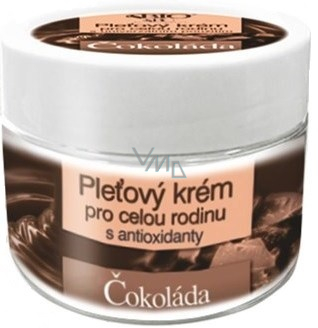 Pleťový a tělový krém pro celou rodinu s pravou čokoládou. Krém svým obsahem čokolády ( kakao, lecitin, kakaové máslo) působí blahodárně na pokožku Vašich rukou. Antioxidanty z kakaa chrání pokožku před stárnutím a tvorbou vrásek. Přítomné vitamíny A, B, D, E a biominerály se podílejí na výživě a regeneraci pokožky. Kakaové a bambucké máslo pokožku promastí a zvláční. Krém dále obsahuje významné aktivní látky jako je panthenol, allantoin, glycerin, kolagen aj. Krém je středně tučný, rychle vstřebatelný s univerzálním použitím pro všechny typy pokožky. Je lehký, nedráždivý, nezanechává mastný pocit na pokožce. Potěší Vaše smysly.