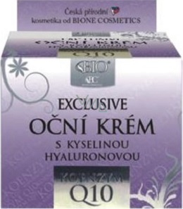 Ekskluzywny krem pod oczy z podwyższoną zawartością koenzymu Q10, z nawilżającym składnikiem i dodatkiem kwasu hialuronowego jest przeznaczony dla wszystkich typów skóry. Zmęczonej skórze przywraca tonus i blask, skóra jest gładka, nawilżona i odżywiona. Koenzym Q10 wzmacnia oddychanie komórkowe i tym samym optymalizuje procesy biochemiczne w skórze. Konsumenci potwierdzają, że stopniowo dochodzi do rozjaśnienia skóry, znikają drobne, z czasem również głębsze zmarszczki. Krem jest wytwarzany jako bardzo lekki, nowoczesny emulgel z minimalną ilością emulgatorów i zmniejszoną perfumacją. Krem jest wzbogacony o nawilżający glicerol, regenerujący alantoin, odżywczy panthenol, olej migdałowy i masło shea. Krem zawiera wyłącznie mineralny filtr UV, dla ochrony przed wpływami zewnętrznymi oraz znaczne ilości przeciwutleniacza - witaminę E.