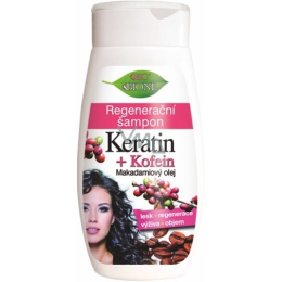 Hydrolizat keratyny z owczej wełny zawiera aminokwasy identyczne z aminokwasami ludzkich włosów. Używanie szamponu Keratin prowadzi do uzupełnienia struktury włosów uszkodzonej promieniowaniem słonecznym, farbowaniem, trwałą ondulacją, suszeniem, rozjaśnianiem i starzeniem się. Włosy staną się mocniejsze, odzyskają swoją elastyczność i blask, nie będą się łamać. Szampon jest wzbogacony o regenerujący pantenol i kondycjonujący lecytynę roślinną. Blask i gładkość włosów zostały wspierane przez dodatek cennego oleju makadamia. Preparat jest wzbogacony o popularny kofeinę, która według badań jest udowodnionym stymulantem wzrostu mieszków włosowych. Po aplikacji środka dochodzi do zwiększenia objętości fryzury oraz zwiększenia blasku włosów. Szampon jest wyprodukowany jako bardzo delikatny koncentrat. Wykazuje wysoką pienistość i delikatną moc odtłuszczającą. Gwarantujemy, że go pokochasz.