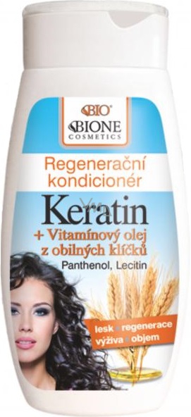 Unikalna i intensywna regeneracja wszystkich typów włosów. Hydrolizat keratyny z owczej wełny zawiera aminokwasy identyczne z aminokwasami ludzkich włosów. Do unikalnej maksymalizacji regeneracji przyczynia się dodatkowa czysta aminokwas cystein, której zawartość wzrasta aż do dziesięciokrotności standardowej ilości w podobnych produktach. Wynikiem jest typowy „siarkowy” zapach preparatu. Używając odżywki Keratin dochodzi do uzupełnienia struktury włosów uszkodzonej promieniowaniem słonecznym, farbowaniem, trwałą ondulacją, prostowaniem, rozjaśnianiem i starzeniem się. Włosy utrwalają się, wraca ich elastyczność i blask, nie puszą się. Odżywka wzbogacona jest o regenerujący pantenol i roślinny lecytyn. Regeneracja i odżywienie Twoich włosów wspierane są olejem z kiełków z witaminami B1, B2, B6 itd. Po zastosowaniu preparatu następuje zwiększenie objętości fryzury i zwiększenie blasku włosów. Wykazuje wysoką rozczesywalność włosów, zwiększa ich objętość. Zawartość butelki wystarcza aż na 100 zastosowań!