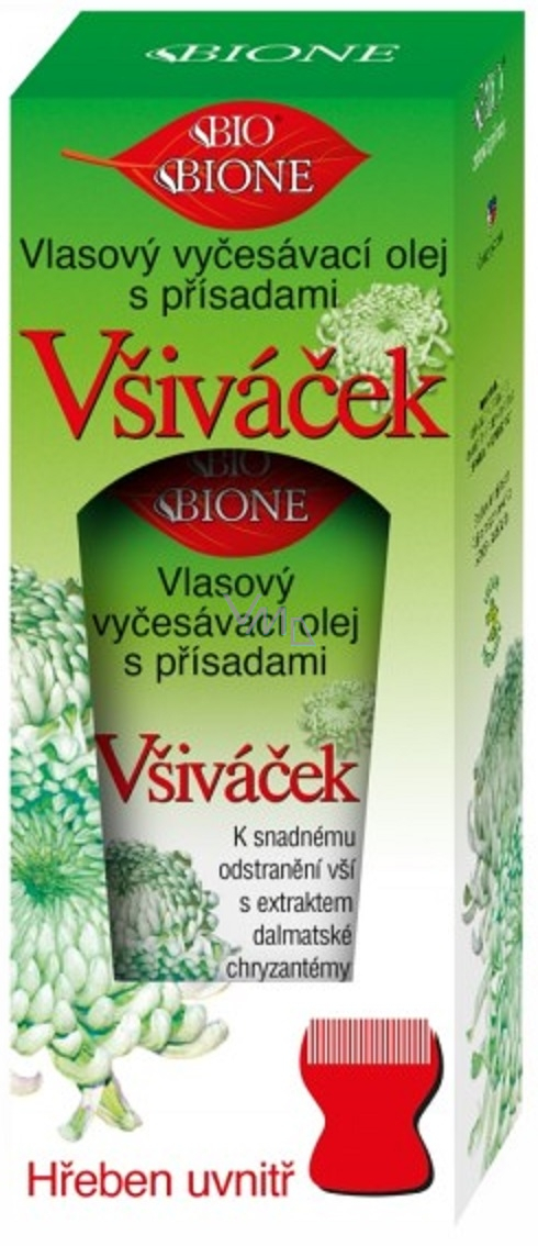 BIONE Wszawica to olejek do wyczesywania włosów, który służy do łatwego mechanicznego usuwania wszy. W zestawie znajduje się grzebień do wyczesywania wszy. Olejek zawiera samouemulgujący tensyd do łatwego wypłukania z włosów oraz ekstrakt dalmatyńskiej chryzantemy.