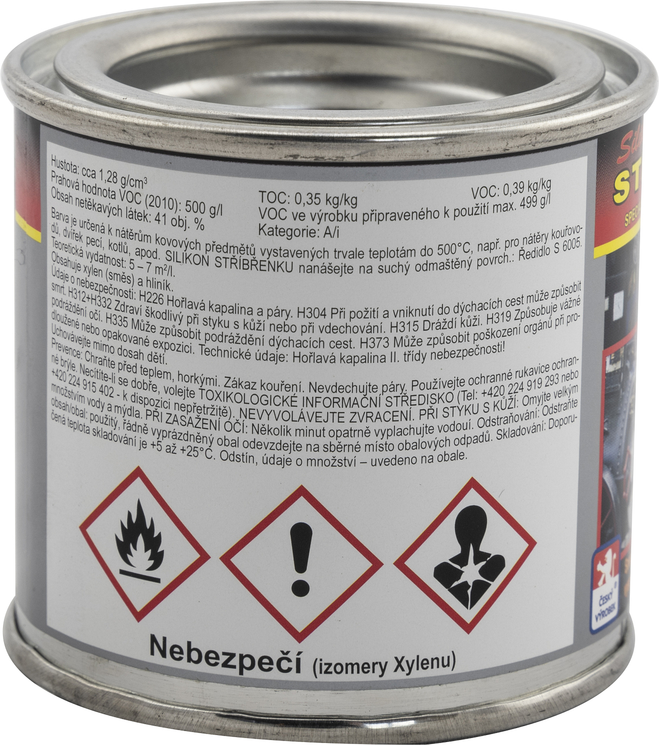 Farba nakładana jest pędzlem, wałkiem, natryskiem lub moczeniem. Pierwszą warstwę lepiej nałożyć pędzlem. Między poszczególnymi warstwami prowadzcie czasowe odstępy min. 4 godziny. Optymalnie, każda warstwa powinna schnąć i być wypalana w temperaturze 200 °C przez 30 minut. System malarski nie musi być wypalany, jest jednak miększy i nie wytrzymuje działań rozpuszczalników organicznych. Podczas późniejszego wypalania całego systemu malarskiego należy zadbać o powolne zwiększenie temperatury!!! Najlepszym przygotowaniem stalowego i żeliwnego podłoża jest strumieniowanie. Minimalne wymagania: usunięcie rdzy i starych degradujących powłok oraz odtłuszczenie. Następuje właściwy system malarski zazwyczaj 3x SILIKONOWA SREBERKA. Do przygotowania podłoża i aplikacji systemu malarskiego zalecamy kierować się zasadami norm technicznych ČSN EN ISO 1 1-8 oraz towarzyszącymi przepisami ČSN ISO 8501 850226.)