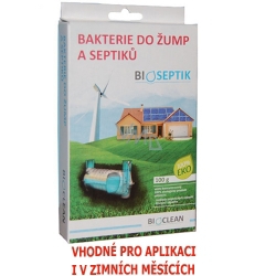 Bioseptik to mieszanka nieszkodliwych, niepatogennych pożytecznych bakterii i enzymów do szamb, septików i oczyszczalni ścieków (OC), które ekologicznie rozkładają substancje organiczne (osady). Preparat eliminuje nieprzyjemny zapach. Tworzy i utrzymuje naturalny proces rozkładu w Twoim zbiorniku. Po regularnym stosowaniu w septiku, szambie lub OC nie osadza się stały odpad, a zawartość zbiornika nie wydziela nieprzyjemnego zapachu! Preparat nie zawiera żadnych agresywnych substancji chemicznych - działa na podstawie naturalnych zasad rozkładu, więc w żaden sposób nie szkodzi środowisku.