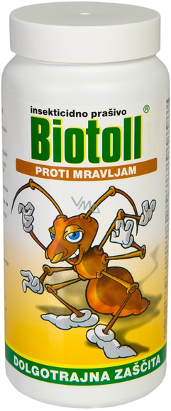 Biotoll insekticidní prášek proti mravencům je výrobek připravený k okamžitému použití. Je charakteristický svojí něžnou vůní a jednoduchým použitím. Přípravek roznášíme kolem stěn a v koutech prostoru, ve kterém si všimneme, že se mravenci vyskytují. Používáme ho kdykoliv, když se mravenci vyskytnou v prostoru.