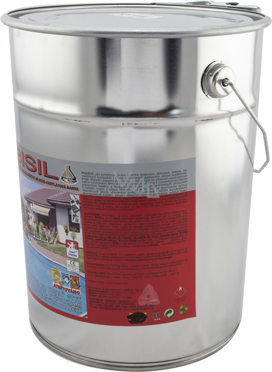 - Barva se nanáší minimálně ve dvou vrstvách. Optimální tloušťka vrstev samotného vytvrzeného Bisilu je v rámci běžných podmínek 80-120 um (3 vrstvy).
