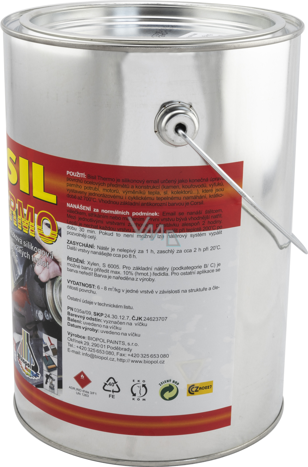 Farba przeznaczona do wykończenia powierzchni stalowych, żeliwnych przedmiotów i konstrukcji narażonych na jednorazowe lub cykliczne obciążenia termiczne. Farba jest formułowana na bazie wysokiej jakości żywicy silikonowej z użyciem nowoczesnych nieorganicznych pigmentów spinelowych, które nie degradują nawet w temperaturach wokół 700 °C.