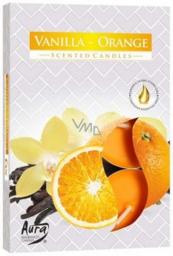 Bispol Aura Vanilla Orange - Vanilka a pomeranč vonné čajové svíčky 6 kusů