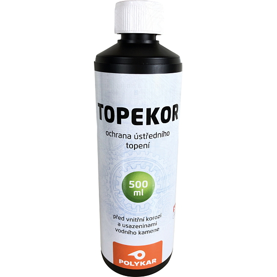 Topekor, środek przeciwdziałający korozji i osadzaniu kamienia wodnego w systemach centralnego ogrzewania. Objętość opakowania zapewnia doskonałą ochronę systemu o objętości do 400 l wody przez co najmniej 2 lata. Preparat jest odpowiedni do wszystkich systemów centralnego ogrzewania, gdzie medium grzewczym jest woda, w tym ogrzewania podłogowego.
