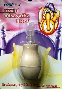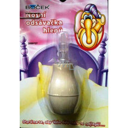 Plastová odsávačka do nosu s gumovým balónkem určená pro šetrné odsátí hlenu z nosních dírek pro novorozence, kojence a batolata.