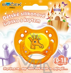Opis Boček Silikonové šidítko s krytem 0-18 měsíců různé barvy 1 kus