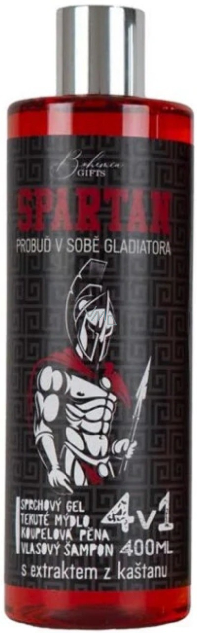 Bohemia Gifts 4w1 Spartan to produkt odpowiedni dla prawdziwych mężczyzn, którzy cenią siłę, praktyczność i prostotę. Ten kosmetyk łączy w sobie żel pod prysznic, szampon do włosów, piankę do kąpieli i płynne mydło w jednej butelce. Jest idealny do codziennego użytku, zarówno w domu, na siłowni, jak i w podróży. Z orzeźwiającym zapachem i ekstraktem z kasztanowca dba o skórę i włosy. Zapewni Ci energię i poczucie czystości przez cały dzień. Walcz z wyzwaniami dnia jak prawdziwy Spartanin!