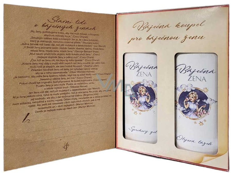 Opakowanie prezentowe jest w formie książki, dzięki czemu pod odchyloną przednią stroną można przeczytać interesujące teksty celebrujące kobiety.