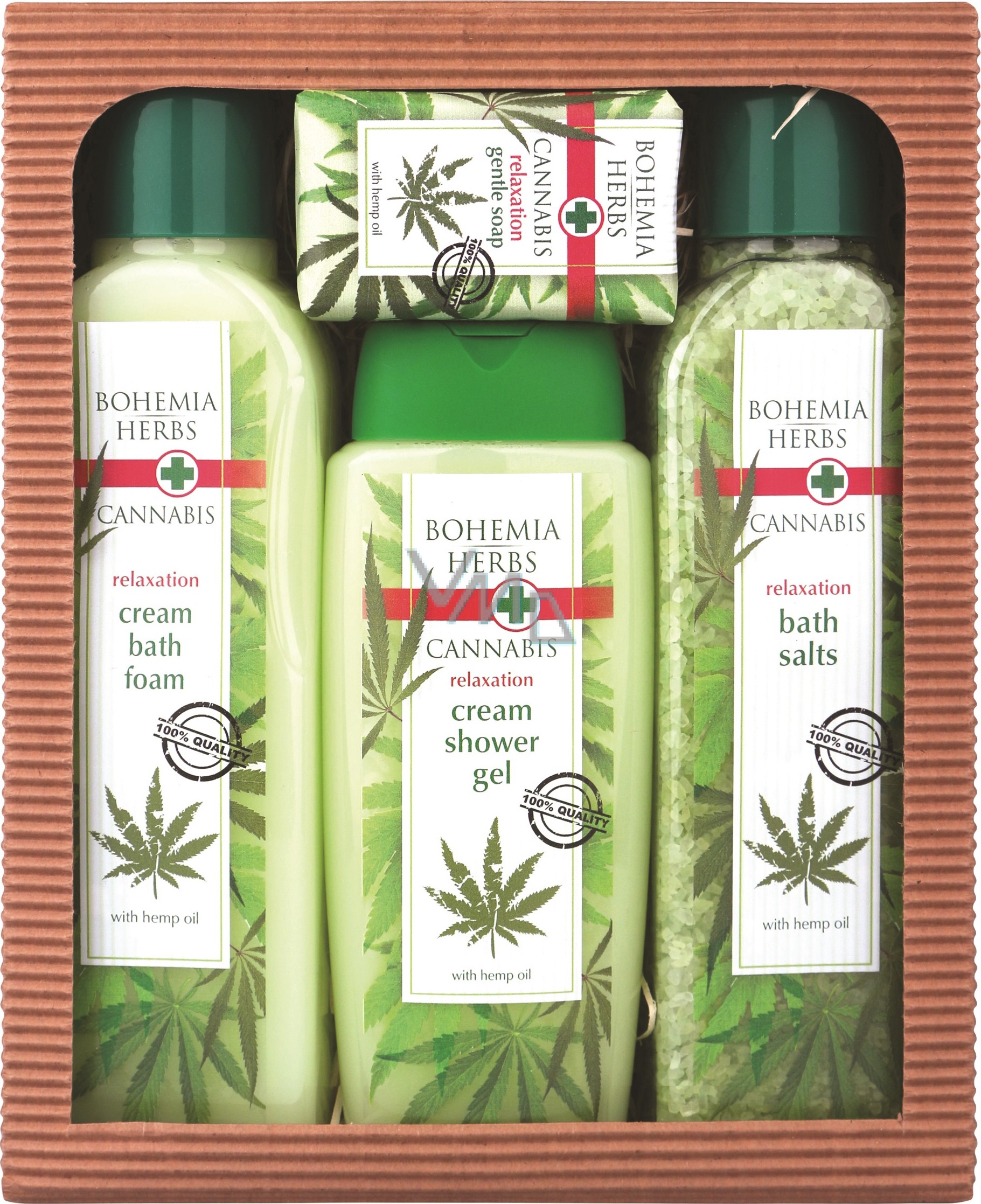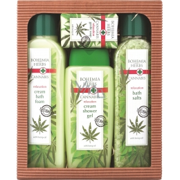 Bohemia Herbs Cannabis regenerační koupelová sůl s konopným olejem. Nová koupelová sůl z řady kosmetiky s přírodními látkami pro ošetřující blahodárnou koupel. Je přípravena jako unikátní kombinace kvalitní soli s kvalitním olejem ze semen z konopí (Cannabis Sativa L., Angiospermae), který působí jako přírodní emollient, zjemňuje působení mycích složek na pokožku a napomáhá ji udržovat přirozeně hebkou a jemnou. Takto připravená koupel provoní pokožku, kvalitně ji ošetřuje a pomáhá uvolnění těla.