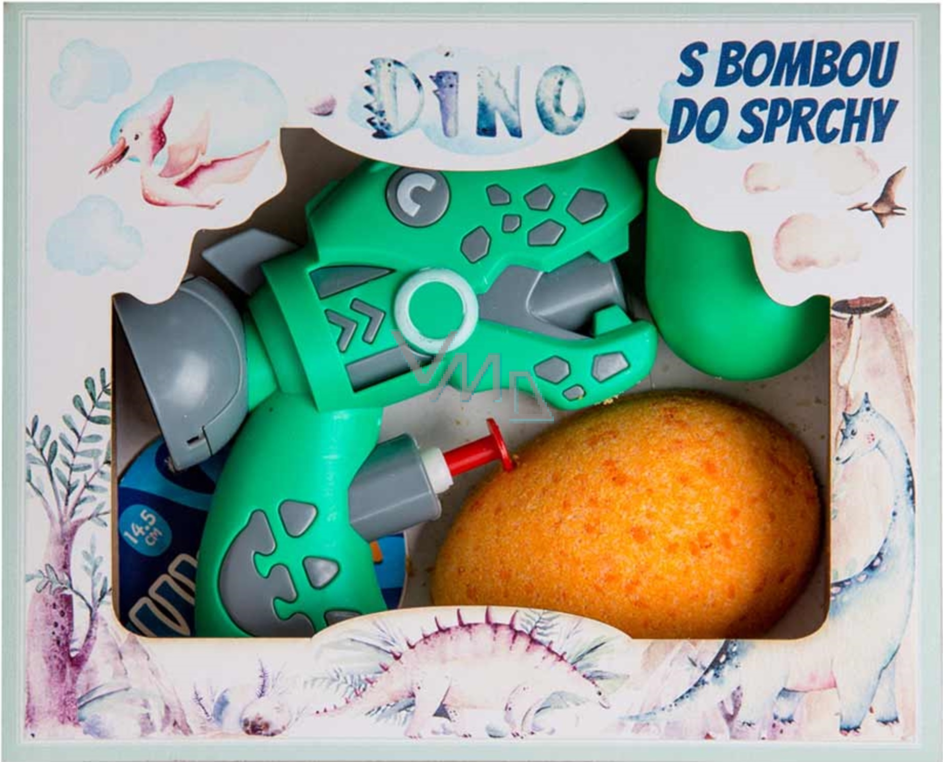 Bohemia Gifts Dino musująca kula do kąpieli 70 g + pistolet wodny, zestaw kosmetyków dla dzieci