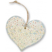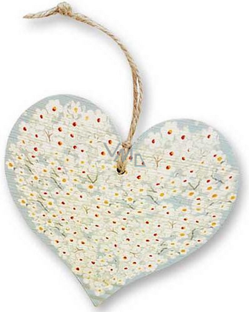 Bohemia Gifts Dřevěné dekorační srdce s potiskem Bílé květy 13,5 cm