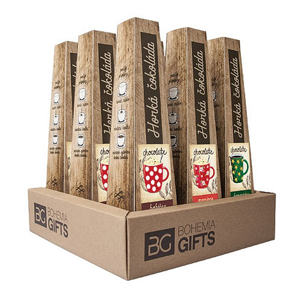 Horká mléčná čokoláda 30 g - prodejní display 9 ks - pro rozpuštění v horkém mléce a vytvoření lahodného čokoládového nápoje. Sladký dárek pro vaše blízké.