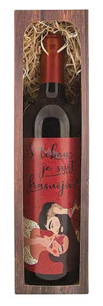 Bohemia Gifts Merlot z lásky - S tebou je svět krásnější dárkové červené víno 750 ml