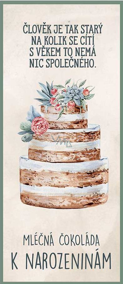 Dárková mléčná čokoláda pro vaše nebližší - K narozeninám. Sladký čokoládový dárek pro vaše blízké, přátele a kolegy k narozeninám, svátku nebo pro radost. Náš sladký dárek to řekne za vás. Obsah kakaové sušiny nejméně 30%.