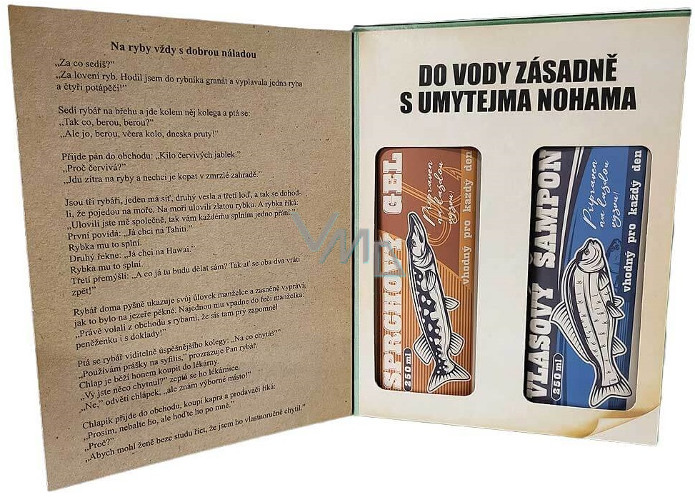 Bohemia Gifts Dla rybářů żel pod prysznic 250 ml + szampon do włosów 250 ml, książka dla mężczyzn zestaw kosmetyczny