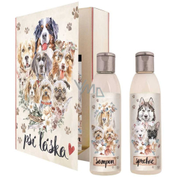 Kosmetyczny zestaw dla wszystkich miłośników najlepszych przyjaciół człowieka. Oryginalny zestaw kosmetyków zawiera żel pod prysznic i olejową kąpiel z olejowymi składnikami w tym lawenda. Nietypowy kosmetyczny prezent dla każdego miłośnika psich domowych pupili. Po otwarciu przedniej strony pudełka możesz przeczytać krótkie teksty o psach.