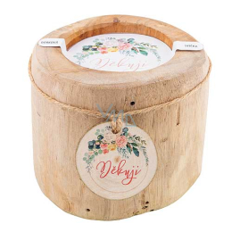 Vonná svíčka v teakovém dřevě s dřevěnou ozdobou. Teaková svíčka s nápisem Děkuji je krásná dekorace pro váš domov nebo milý dárek pro vaše blízké, kamarádku, manželku nebo kolegyni v práci. Zapalte svíčku, otevřete si lahvinku dobrého vína a užívejte si klidu a pohodlí.