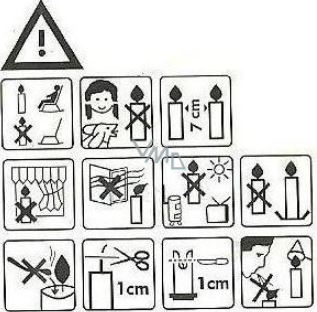 | Svíčka: | Dodržujte piktogramy uvedené na svíčkách |
