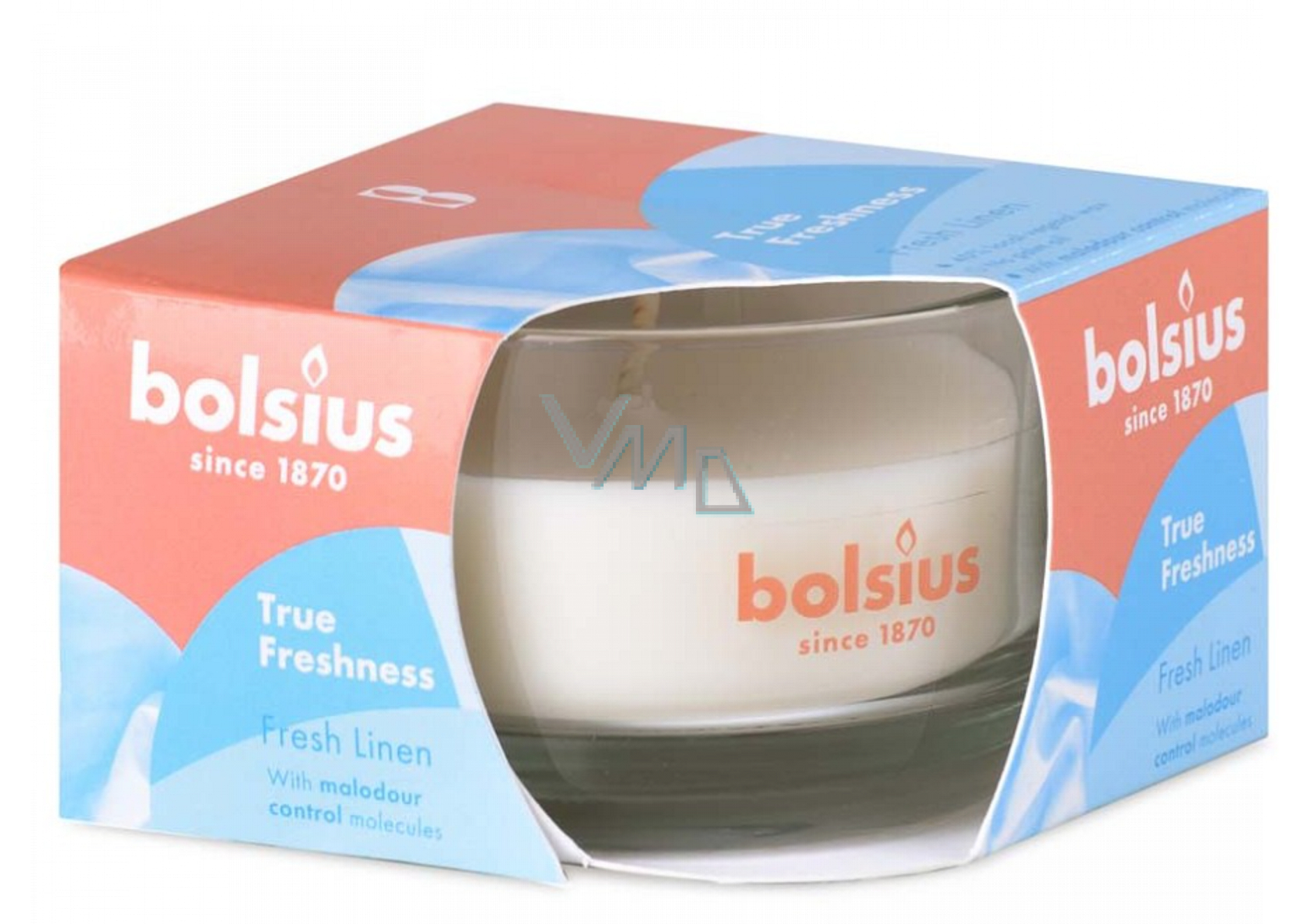 Bolsius True Freshness Fresh Linen - Čerstvé prádlo vonná svíčka ve skle 80 x 50 mm