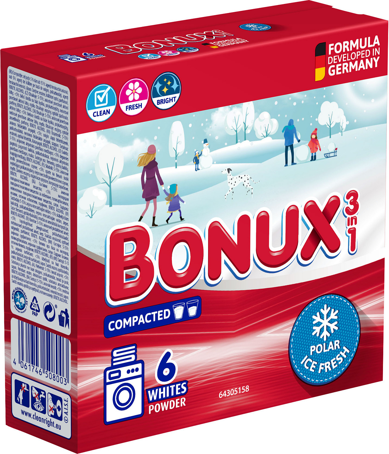 Bonux 3w1 o wyjątkowym świeżym zapachu jest przeznaczony do białego prania. Proszek do prania Bonux White Polar Ice Fresh to mądry wybór w fantastycznej cenie. Otrzymasz dobrą moc prania i świeży zapach, jakiego można oczekiwać tylko od najlepszych i najdroższych środków do prania. Zawiera aktywne cząsteczki dla doskonałego prania oraz składnik zapobiegający osadzaniu się kamienia wodnego, możesz prać w temperaturach od 30 °C. Nie używać do wełny i jedwabiu.