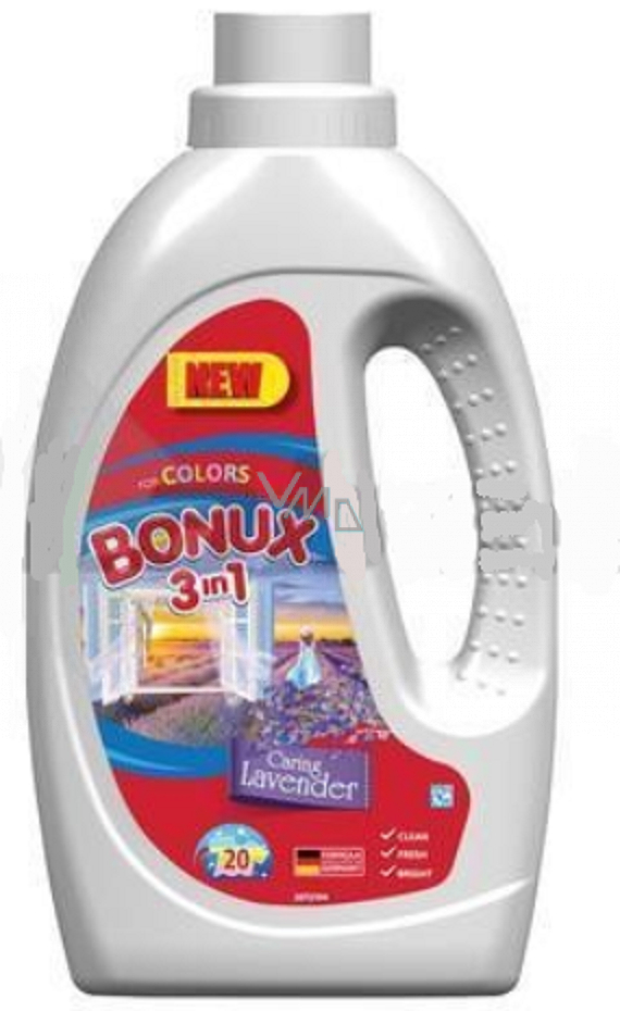 Bonux na barevné prádlo s vůní levandule a jeho složení 3v1 vám při náročném praní pro celou rodinu pomůže. Dodává vašemu prádlu dlouhotrvající svěžest. Není vhodný pro vlnu a hedvábí. Skvěle odstraňuje skvrny, propůjčuje prádlu svěžest a není drahý. Chytré složení se třemi výhodami v jednom balení od Bonuxu! A celá rodina může být spokojená!