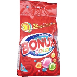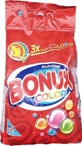 Bonux Color je ideálním pracím prostředkem pro barevné prádlo. Odstraňuje skvrny a napomáhá vašemu oblečení udržet si původní zářivé barvy. Obsahuje nové aktivní částice pro dokonalejší praní a složku zabraňující usazování vodního kamene. Není vhodný pro vlnu a hedvábí.