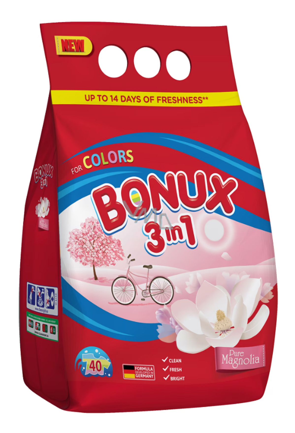 Bonux na barevné prádlo s vůní magnólie a jeho složení 3v1 vám při náročném praní pro celou rodinu pomůže. Dodává vašemu prádlu dlouhotrvající svěžest. Není vhodný pro vlnu a hedvábí. Skvěle odstraňuje skvrny, propůjčuje prádlu svěžest a není drahý. Chytré složení se třemi výhodami v jednom balení od Bonuxu! A celá rodina může být spokojená!