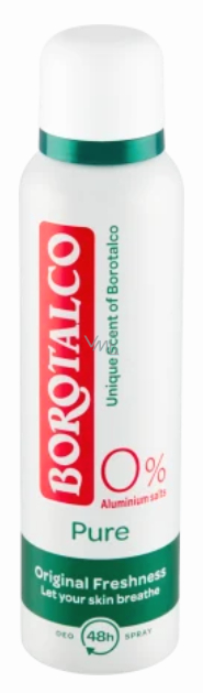 Borotalco Pure dezodorant w sprayu Original Freshness dzięki skutecznemu składowi bez zawartości soli glinowych wchłania pot i pozostawia skórę pod pachami suchą i chronioną przez całe 48 godzin. Dla długotrwałego uczucia świeżości!