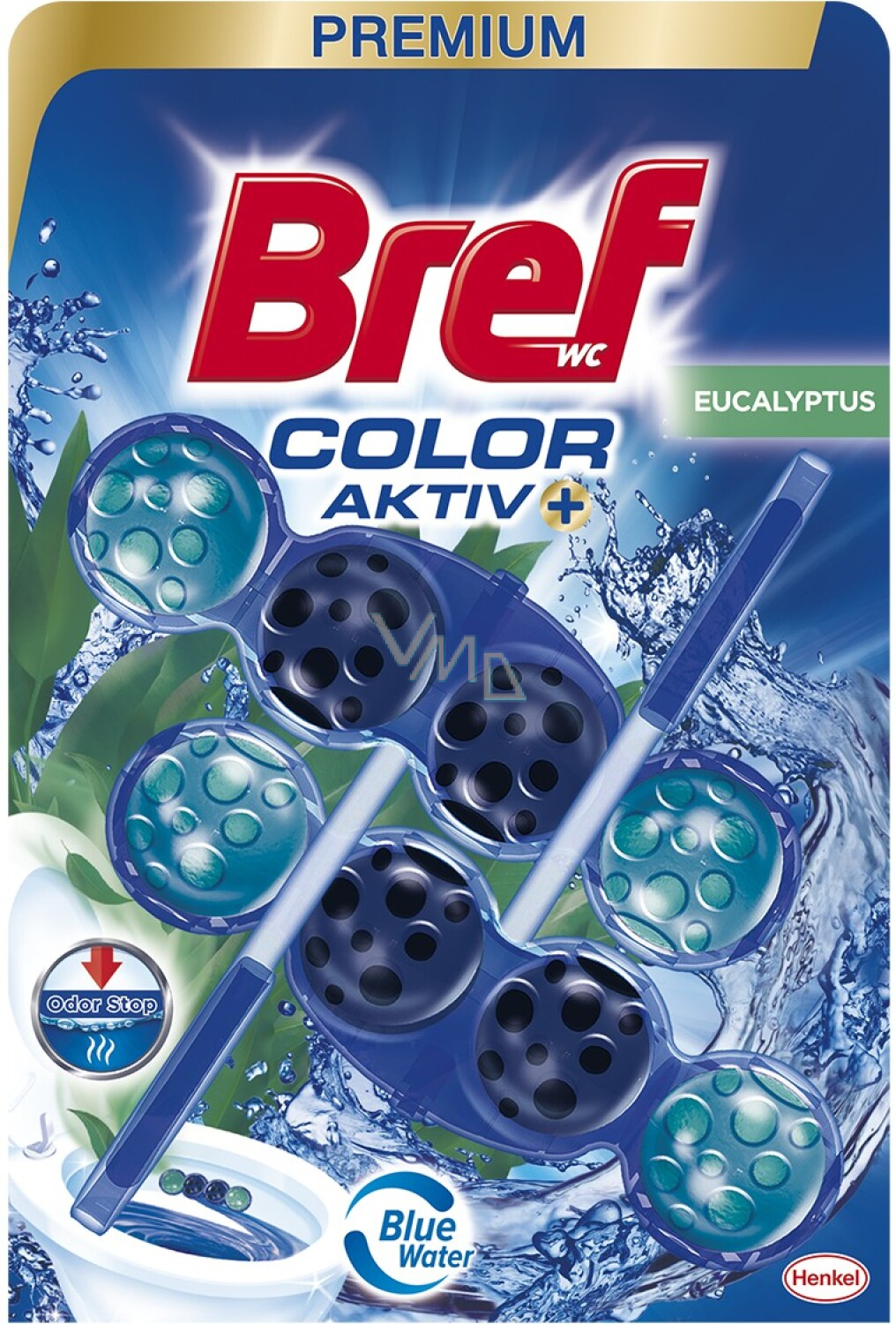 Bref Color Aktiv WC blok s technologií Odor Stop vytváří ochrannou bariéru proti nepříjemných zápachů a zároveň uvolňuje dlouhotrvající svěžest. Zažijte neutrailzaci zápachu po každém spláchnutí s přidanou hodnotou s vůní eukalyptu.