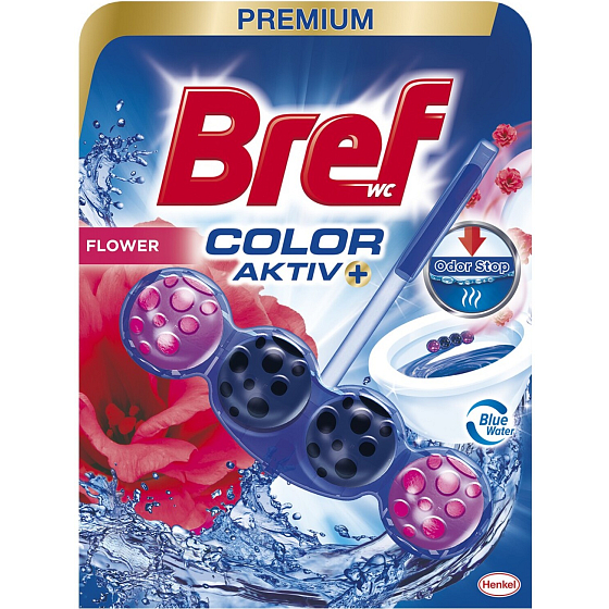 Bref Blue Aktiv Fresh Flowers jest wyposażony w cztery kulki, z których każda ma specyficzny skład dla doskonałego wyniku. Stabilny blok WC o zapachu świeżych kwiatów w atrakcyjnym opakowaniu.
