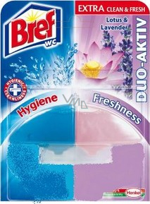 Díky patentované dvoukomorové technologii Bref Duo Aktiv se toaleta při každém spláchnutí zároveň čistí i osvěžuje. Levá komora WC bloku skrývá vylepšený modrý tekutý WC čistič s ještě aktivnějším složením, který se uvolňuje s každým spláchnutím do toaletní mísy, kde odstraňuje nečistoty a vodní kámen. Z pravé komory se zároveň uvolní intenzivní, dlouhotrvající vůně s větším obsahem parfémové složky, takže celá vaše toaleta je dokonale čistá a provoněná.