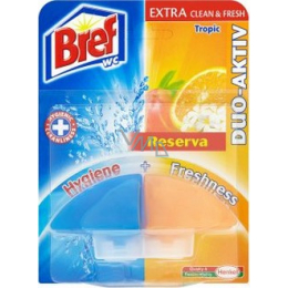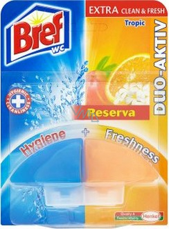 Udržet toaletu voňavou a čistou dá někdy velkou námahu. Navíc drhnutí WC mísy nebývá zrovna tou nejoblíbenější činností. Nyní je zde řešení v podobě nového vylepšeného WC bloku Bref Duo-Aktiv EXTRA Clean & Fresh. S jeho pomocí už nebude těžké udržet toaletu zářivě čistou a fantasticky svěží. Bref Duo-Aktiv EXTRA Clean & Fresh nyní recepturu opravdového WC čističe a obsahuje ještě více čisticích složek a svěžího parfému. Výsledkem je dokonalá kombinace hygienické čistoty a fantastické svěžesti. Vybírat můžete ze široké škály vůní.