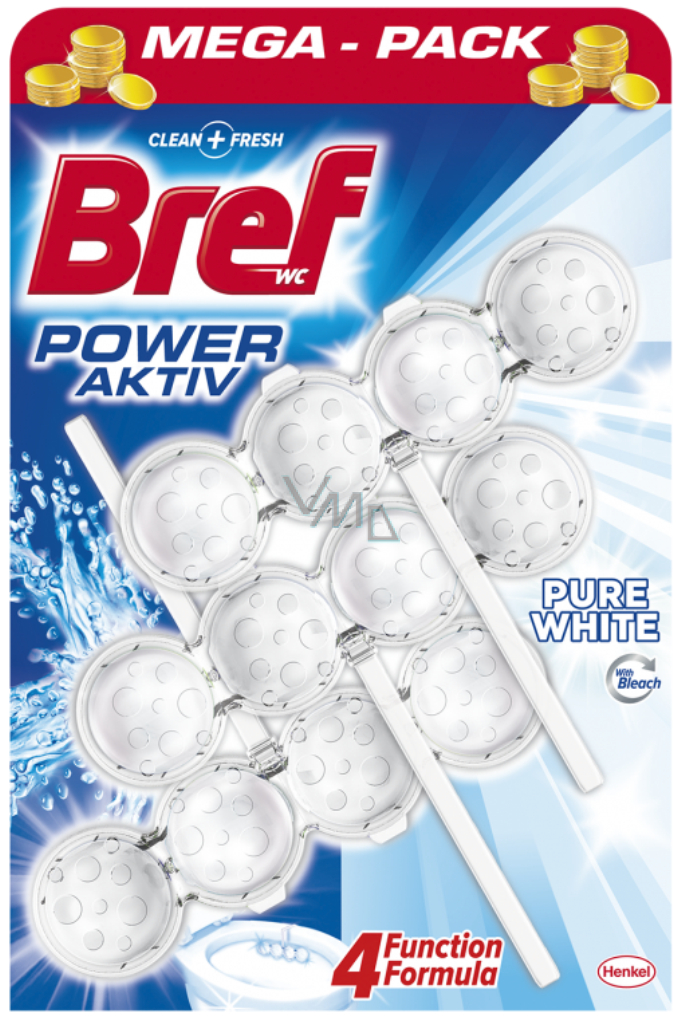 Bref Power Aktiv 4 Formula Pure White WC blok pro hygienickou čistotu a svěžest Vaší toalety 3 x 50 g