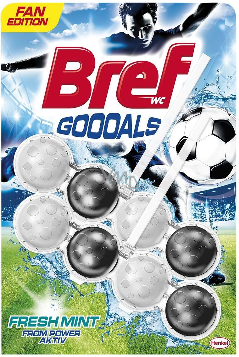 Bref Power Aktiv Goooals Fresh Mint WC blok pro hygienickou čistotu a svěžest Vaší toalety, zbarvuje vodu 2 x 50 g