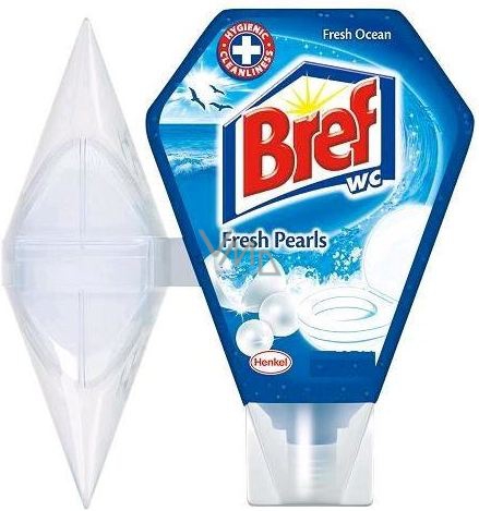 Bref Sea Breeze je gelový čistič a osvěžovač, odstraňující rez, vodní kámen a nečistoty z toalet, tu zanechává svěží a hygienicky čistou. Užijte si hygienickou čistotu a úžasnou svěží vůni při každém spláchnutí. Díky praktickému košíčku, který je součástí balení se WC gel velice pohodlně doplňuje. Umožňuje hygienické doplňování bez kontaktu ruky. Jedno balení Bref Sea Breeze vystačí až na 400 spláchnutí.