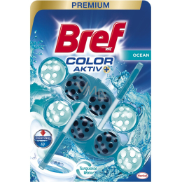 Zawiesz blok Bref Power Aktiv pod krawędzią muszli toaletowej. Nastaw go na strumień wody. Wymień go, gdy pojemnik jest pusty.
