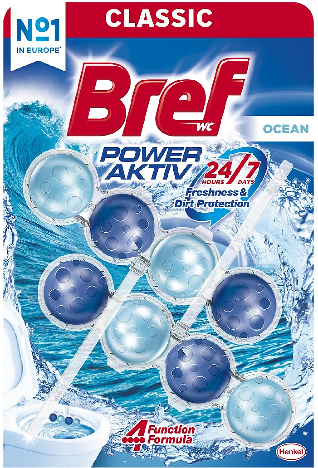 Szukasz prostszego sposobu, aby utrzymać swoją toaletę czystą i świeżą? Bref blok WC to prosty i wygodny sposób, który zapewnia czystość i świeżość w twojej toalecie od pierwszego do ostatniego spłukania. Bloczek WC Bref Power Aktiv z o + 50 % wyższym działaniem przeciwko osadom wapiennym ma skład z 4 funkcjami