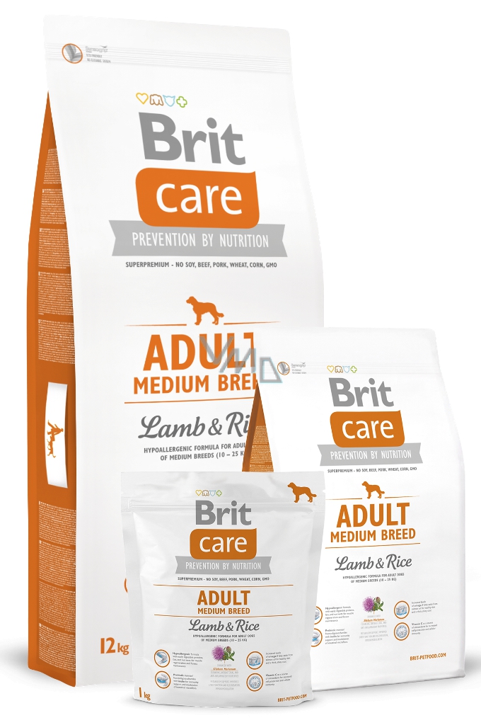 Brit Care Jehněčí + rýže pro dospělé psy 1-7 let středních plemen 10-25 kg 3 kg Hypoalergenní kompletní krmivo