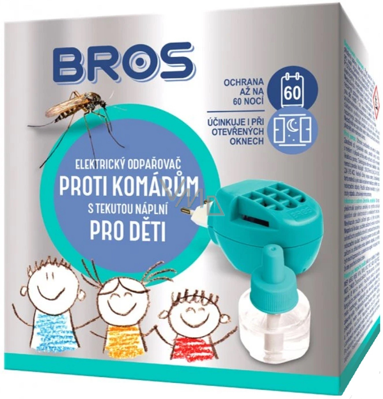 Elektryczny odparowywacz dla dzieci z cieczą zapasową do likwidacji komarów i ochrony wnętrz przed latającymi owadami z zewnątrz. Skuteczność jest zachowana nawet przy otwartych oknach i włączonym świetle. Chroni pomieszczenia o powierzchni do 20 m² (około 50 m³) nawet przez 60 nocy przy użyciu 8 godzin dziennie. Optymalna ochrona jest zapewniona po 30 min. użytkowania. Estetyczne, kolorowe urządzenie doskonale pasuje do kolorów dziecięcych pokoi.