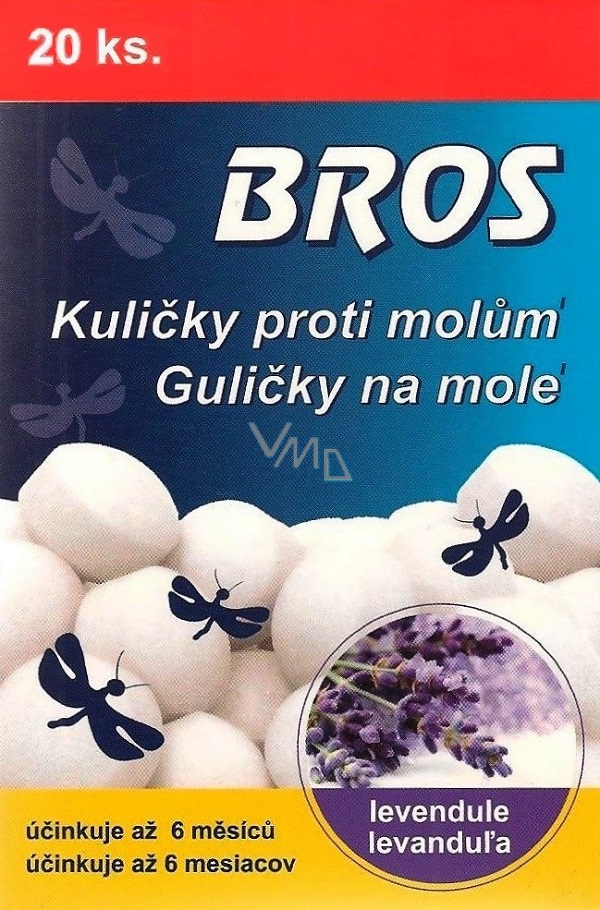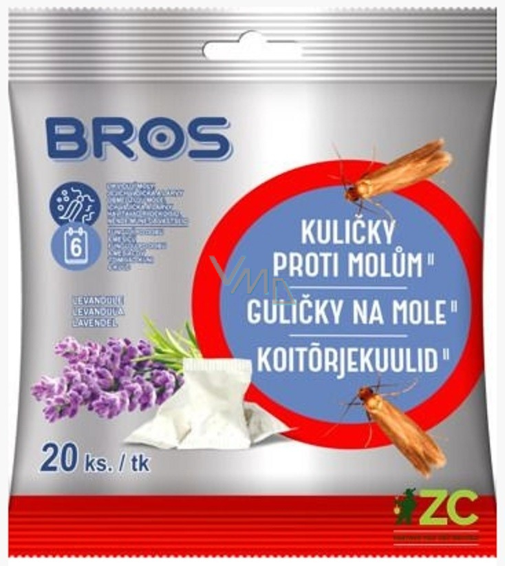 Kule przeciw molom skutecznie chronią odzież w szafach, szufladach i garderobach. Eliminują dorosłe mole odzieżowe, ich jaja i larwy. Każda kula przeciw molom jest umieszczona w osobnym perforowanym woreczku, co ułatwia korzystanie z produktu.