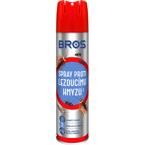 Bros spray na owady pełzające to preparat przeznaczony do usuwania latających i pełzających owadów w budynkach, takich jak karaluchy, ruszaki, mrówki, rybiki, muchy, komary i inne. Specjalna formuła zapewnia wszechstronne działanie preparatu – działa natychmiast na owady, długo utrzymuje się w miejscu aplikacji, niszczy dorosłe osobniki oraz jaja.