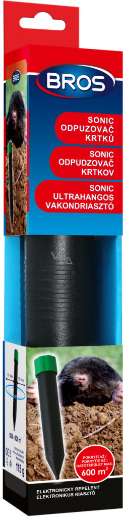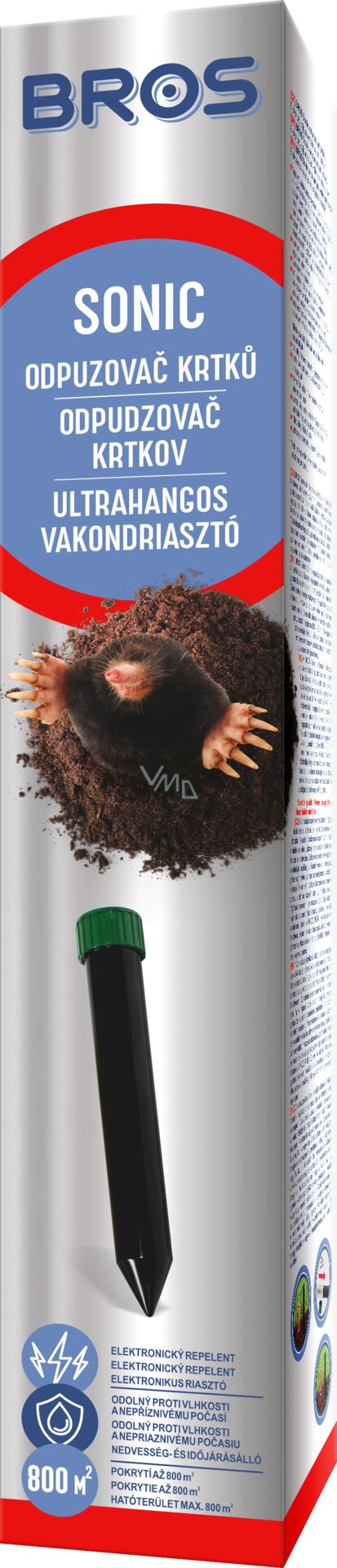 Plašič krtků Bros Sonic účinně odpuzuje krtky, norníky a jiné zemní škůdce z míst jako jsou trávníky, květinové záhony, rekreační plochy, dětská a sportovní hřiště, fóliovníky, zahrádky apod.