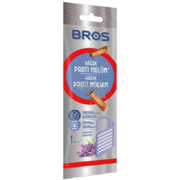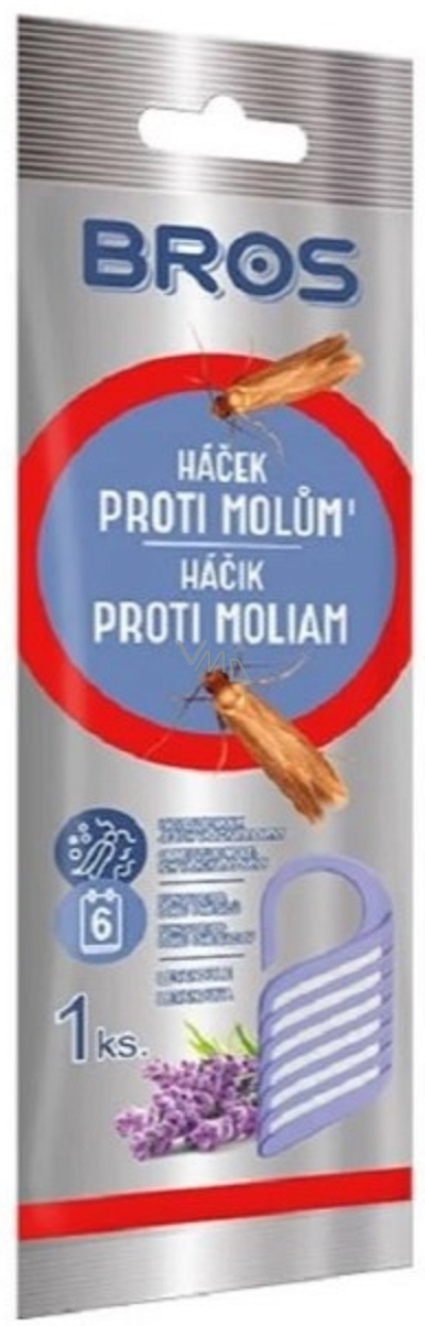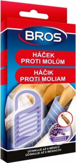 Zatrzymaj mole przed swoją szafą z skutecznym haczykiem BROS. Ten niepozorny pomocnik bezpiecznie ochroni odzież w szafach, szufladach i garderobach. Przez okres do 6 miesięcy Twoje ulubione swetry, płaszcze, spodnie oraz spódnice i bluzki będą całkowicie chronione, a mole nie będą miały do nich dostępu. Haczyk BROS przeciwko molom można łatwo zawiesić w szafie lub włożyć do szuflady. Odzież dodatkowo pięknie pachnie aromatyczną, przyjemną lawendą.